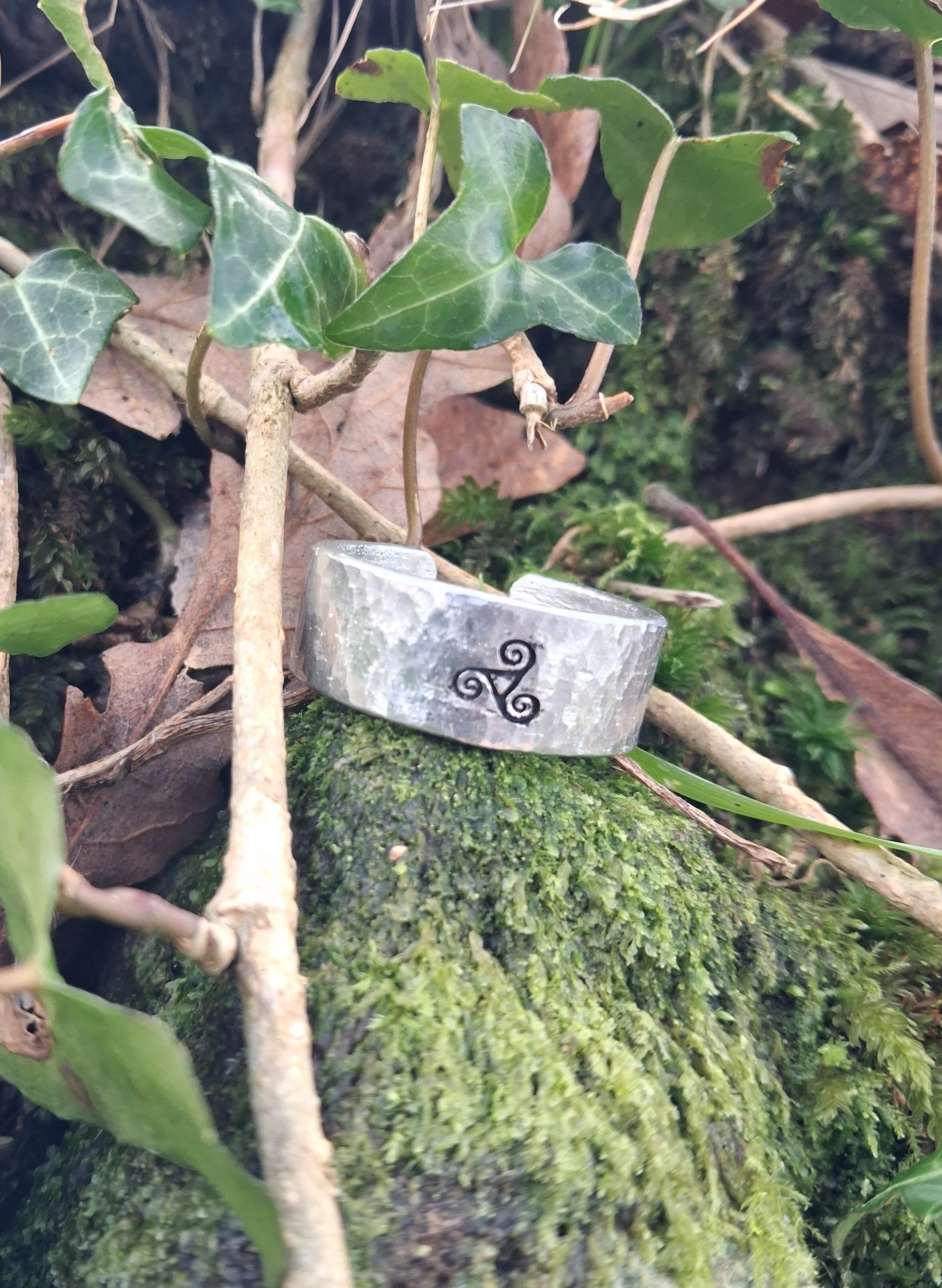 Celtic Triskelion Spiral Ring | Cast and hammered pewter | Open ring
