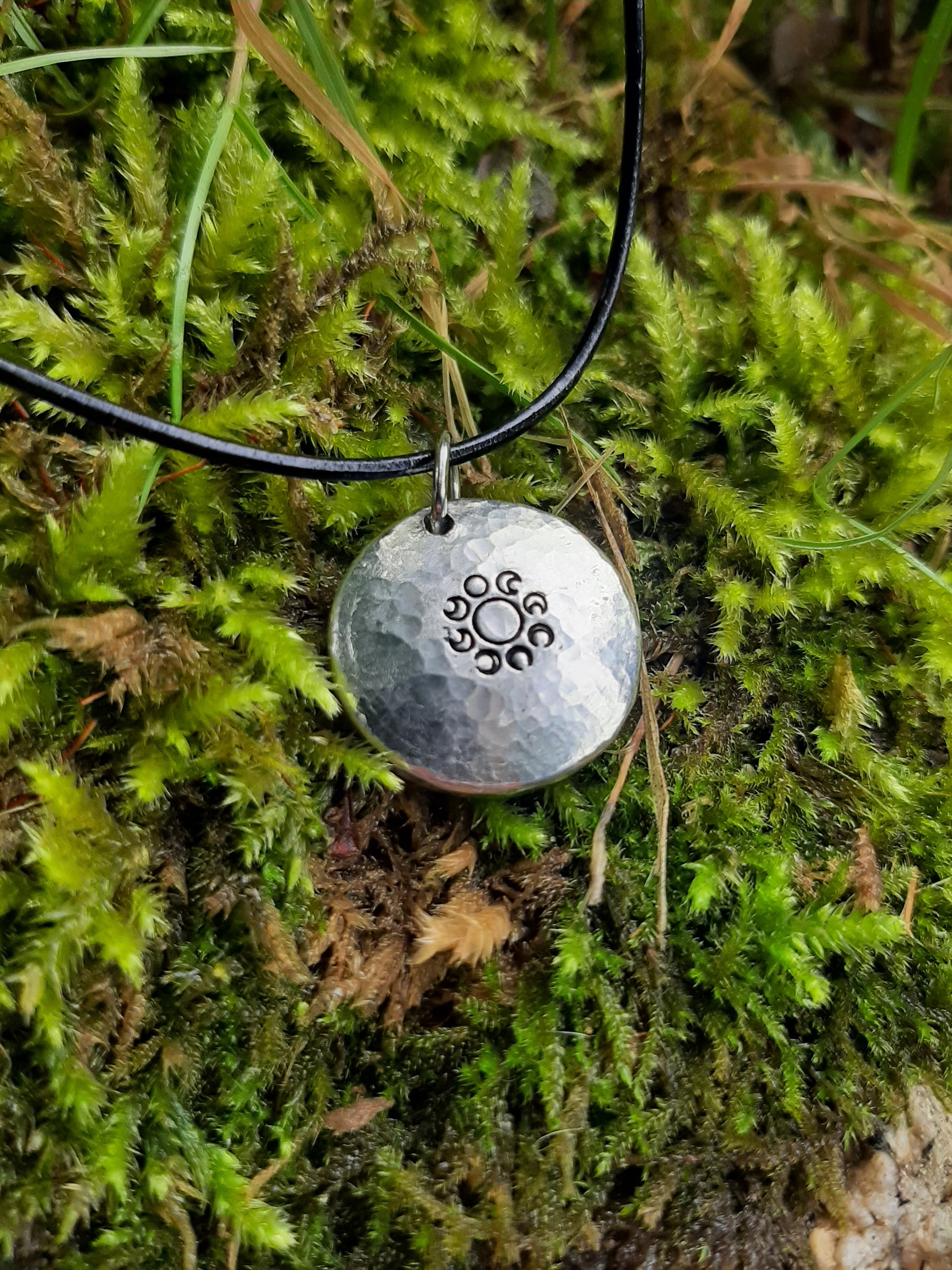 Moon Phase Pendant Necklace -| Lunar Cycle Pendant - Cast and Hammered Pewter